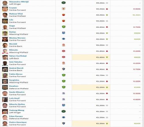 北京时间12月17日,转会市场网公布了中超联赛球员的身价,浙江队在夏窗引进的外援米特里策位居榜首,山东外援克雷桑第二,归化球员塞尔吉尼奥位居第14位,浙江小将王钰栋位居第19位。