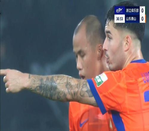 泰山先拔头筹!黄政宇禁区外远射破门随后一路滑跪怒吼